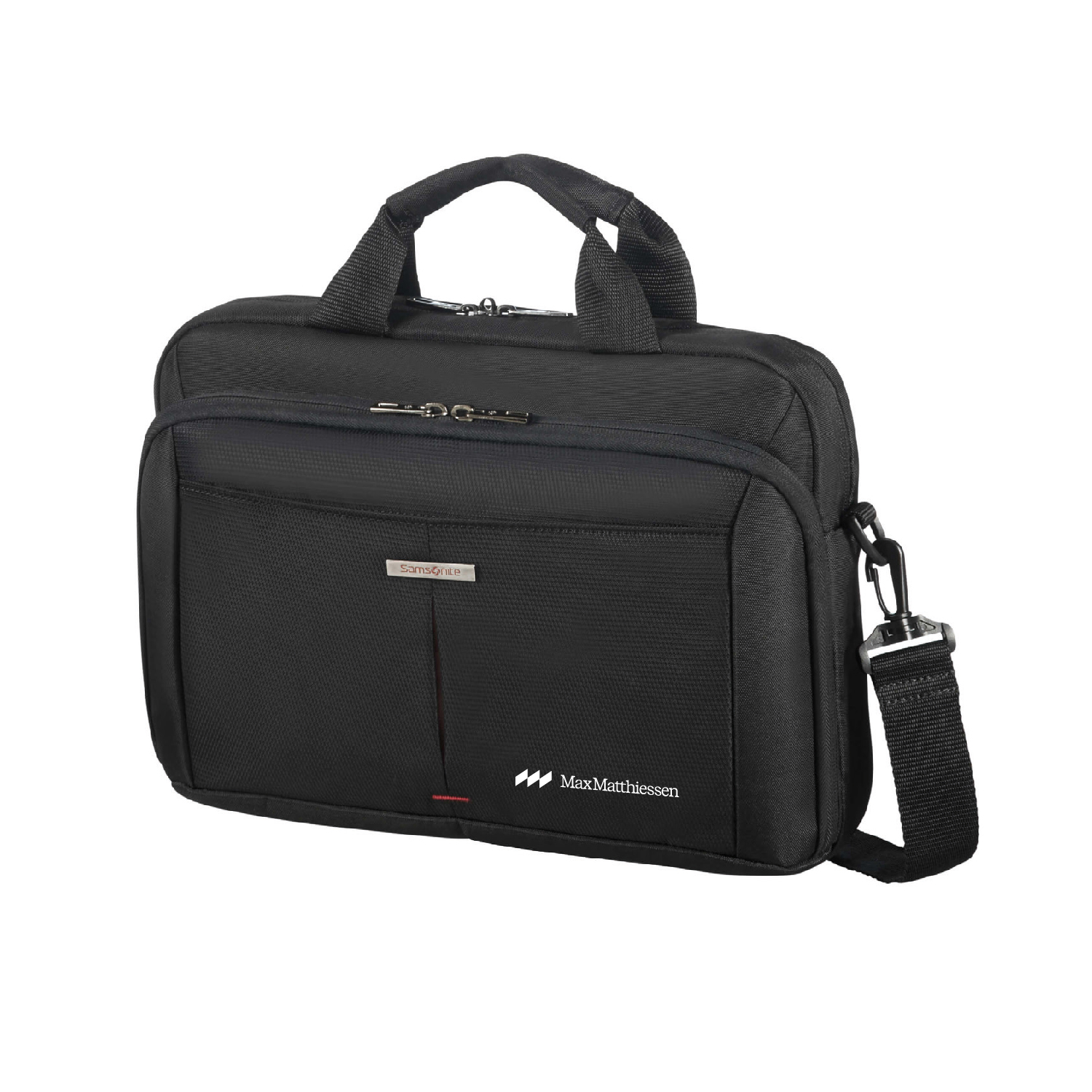 Frontficka med dragkedja och kil och intern organisation med två fickor och pennhållare.